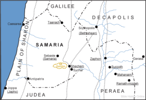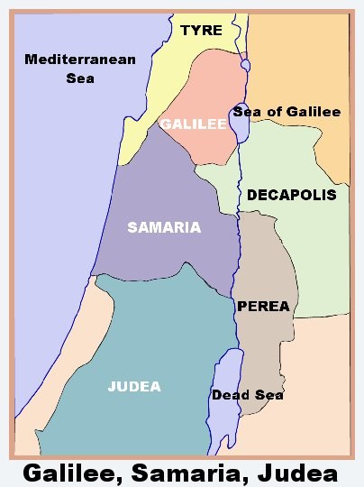 The map gives you a pretty good reference as to where Samaria, Cana and Capernaum are in relation to each other. Lots of walking but not that far apart.